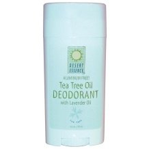 Description: Tea Tree Oil Deodorant with Lavender Oil in stick form combines tea tree oil with chamomile and aloe vera gel for soothing, all day protection. Farnesol-a natural deodorizer-helps eliminate body odor without inhibiting perspiration, a natural and important body function. Its gentle herb and plant extracts make it ideal for even the most sensitive skin. The Inside Scoop: Desert Essence safe and gently Natural Tea Tree Oil Deodorant is formulated without toxic aluminum and yet is extremely effective in controlling under-arm odor. Tea Tree Oil is a pure aromatic oil from Australia. It helps to eliminate odor without stopping perspiration an important function of the body which should not be inhibited. Ingredient Details: Purified Water, Propylene Glycol, Sodium Stearate, Tea Tree Oil, Cocomide DEA, Aloe Vera Gel, Lavender Oil, Farnesol, Chamomile, Calendula Extract, Sodium Borate. Warnings: Does Not Contain: Aluminum, Alcohol, Detergents, Artificial Color Or Synthetic Perfumes. These statements have not been evaluated by the Food and Drug Administration (FDA). This product is not intended to diagnose, treat, cure or prevent any disease.